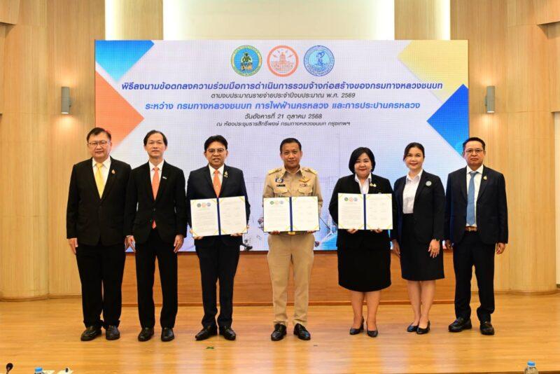 กรมทางหลวงชนบท (ทช.) ได้มีการจัดงานบันทึกข้อตกลงความร่วมมือการดำเนินการรวมจ้างก่อสร้างของกรมทางหลวงชนบทตามงบประมาณรายจ่ายประจำปี 2569 ซึ่งได้ทำการลงนามในบันทึกข้อตกลงร่วมกันระหว่างกรมทางหลวงชนบท (ทช.) สังกัดกระทรวงคมนาคม และการไฟฟ้านครหลวง (กฟน.) การประปานครหลวง (กปน.) สังกัดกระทรวงมหาดไทย โดยในส่วนของ ทช. มีนายพิชิต หุ่นศิริ อธิบดีกรมทางหลวงชนบท เป็นผู้ร่วมลงนาม และทางด้านของ กฟน. มีนายวิลาศ เฉลยสัตย์ ผู้ว่าการการไฟฟ้านครหลวง เป็นผู้แทนในการลงนาม และ กปน. มีนางสาวสุวรา ทวิชศรี ผู้ว่าการการประปานครหลวง เป็นผู้แทนในการลงนามเช่นกัน ในโอกาสนี้มีนายยงยุทธ์ เพ็งเมือง รองอธิบดีกรมทางหลวงชนบท (ด้านดำเนินงาน) นายอดิเทพ ตีระมาศวณิช ผู้อำนวยการ สำนักก่อสร้างทาง รักษาการวิศวกรใหญ่ (ด้านบำรุงรักษาทางและสะพาน) กรมทางหลวงชนบท นายจีระพงษ์ ปิณฑะบุตร ผู้อำนวยการสำนักสำรวจและออกแบบ รักษาการวิศวกรใหญ่ (ด้านสำรวจและออกแบบ) กรมทางหลวงชนบท นายรณชัย เรืองยุทธ ผู้ช่วยผู้ว่าการปฏิบัติการระบบส่ง นางทิมาพร วิมลอนุพงษ์ ผู้ช่วยผู้ว่าการรักษาการในตำแหน่ง รองผู้ว่าการการประปานครหลวง ร่วมเป็นพยานในการลงนามบันทึกข้อตกลงในครั้งนี้ ณ ห้องประชุมธารสิทธิ์พงษ์ กรมทางหลวงชนบท บางเขน กรุงเทพฯ