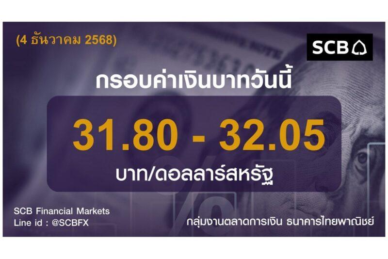 กลุ่มงานตลาดการเงิน ธนาคารไทยพาณิชย์ (SCB Financial Markets) ค่าเงินบาทประจำวันที่ 4 ธันวาคม 2568