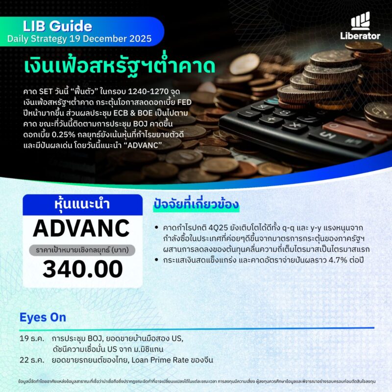 บทวิเคราะห์ “LIB Guide Daily Strategy” ประจำวันศุกร์ที่ 19 ธันวาคม 2568 หัวข้อเงินเฟ้อสหรัฐฯต่ำคาด