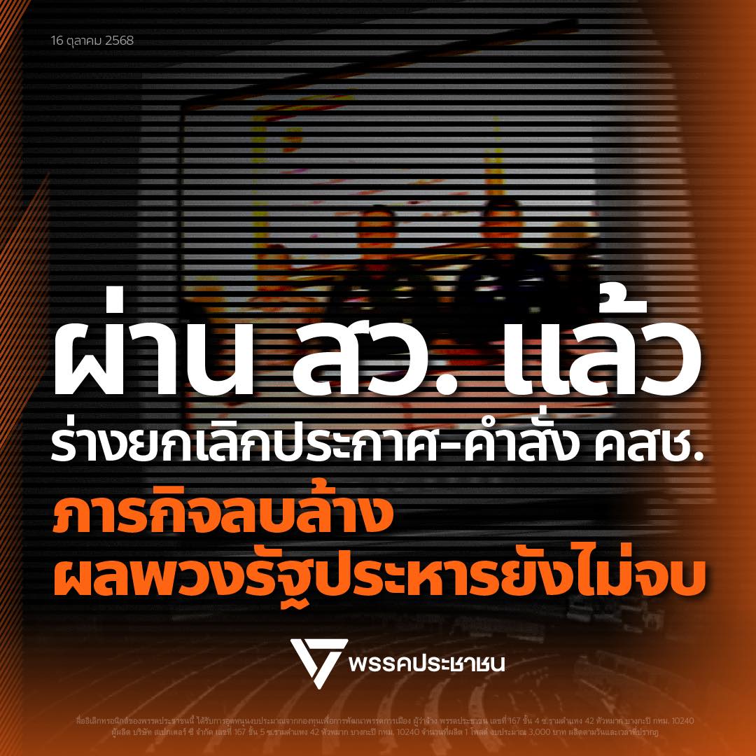 เพจพรรคประชาชนเผย ผลการลงมติสภาผู้แทนฯ ร่างพรบ.ยกเลิกประกาศ-คำสั่ง คสช. ผ่าน สว. ย้ำภารกิจลบล้างผลพวงรัฐประหารยังไม่จบ