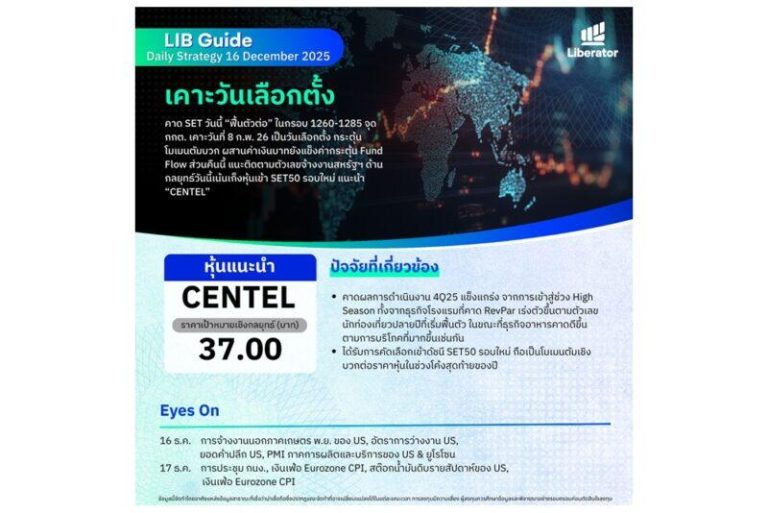 เศรษฐกิจ / ธุรกิจ บทวิเคราะห์ “LIB Guide Daily Strategy” ประจำวันอังคารที่ 16 ธันวาคม 2568 หัวข้อ “เคาะวันเลือกตั้ง”